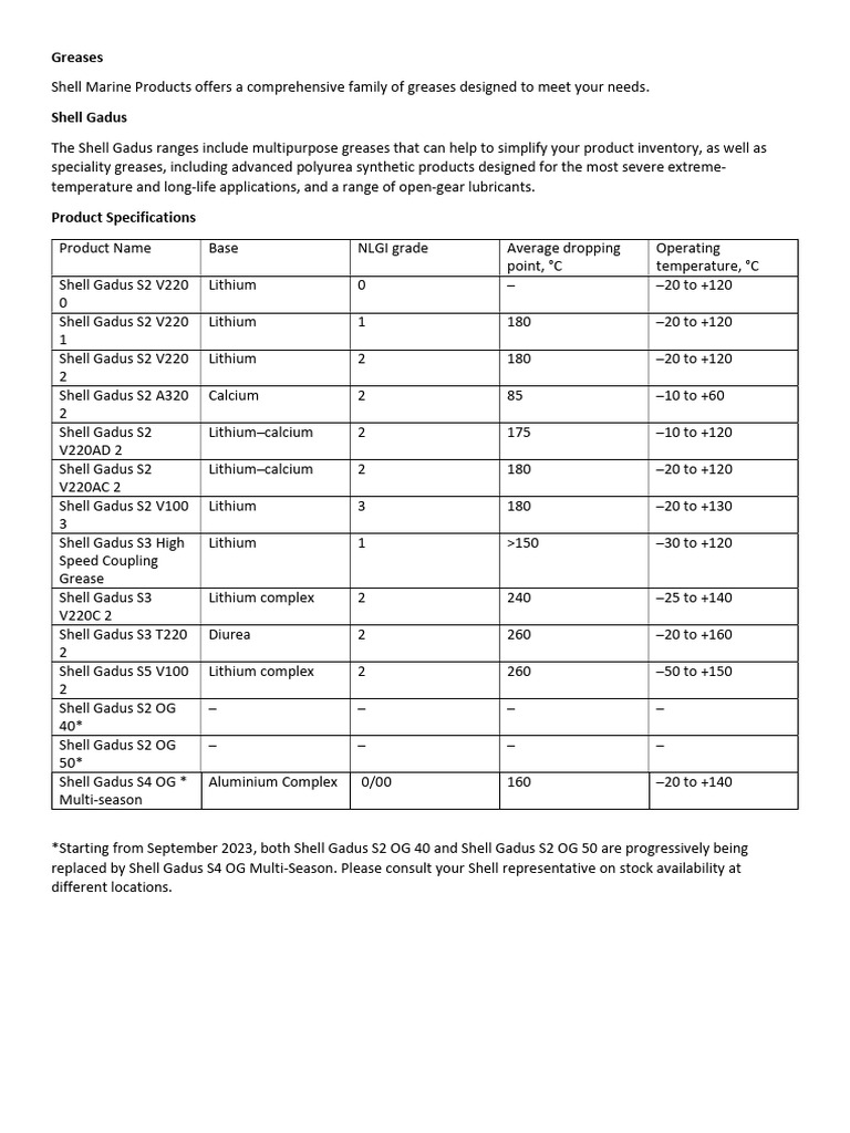 *Starting from September 2023, both Shell Gadus S2 OG 40 and Shell Gadus S2 OG 50 are progressively being