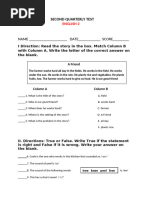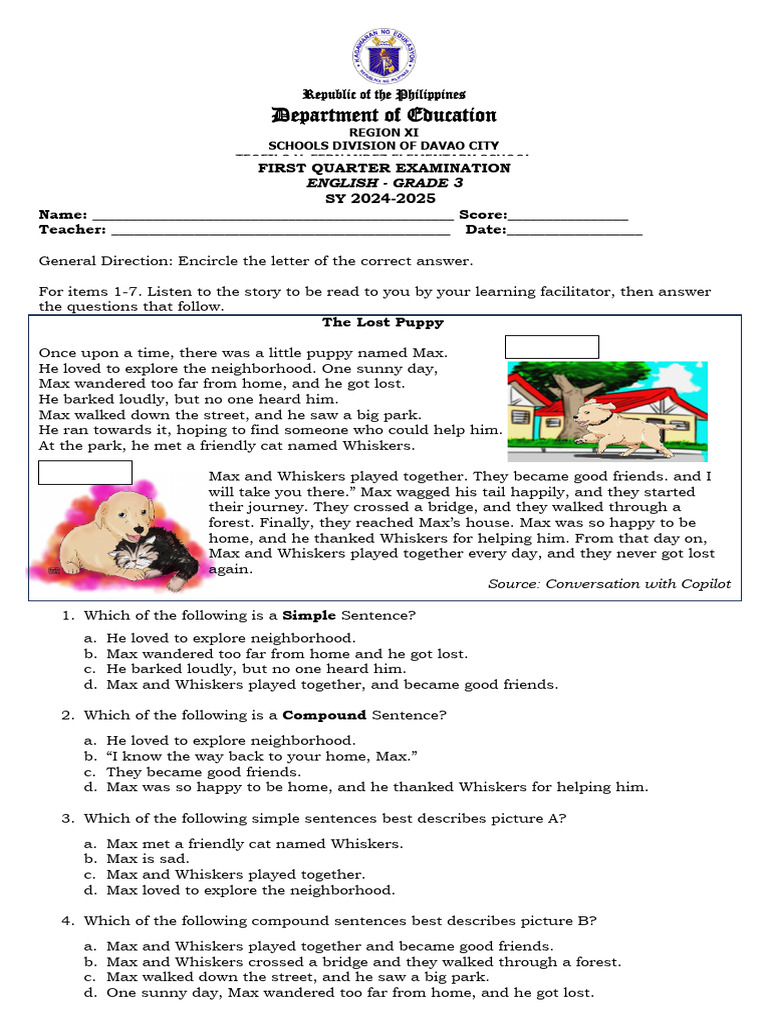 For items 1-7. Listen to the story to be read to you by your learning facilitator, then answer