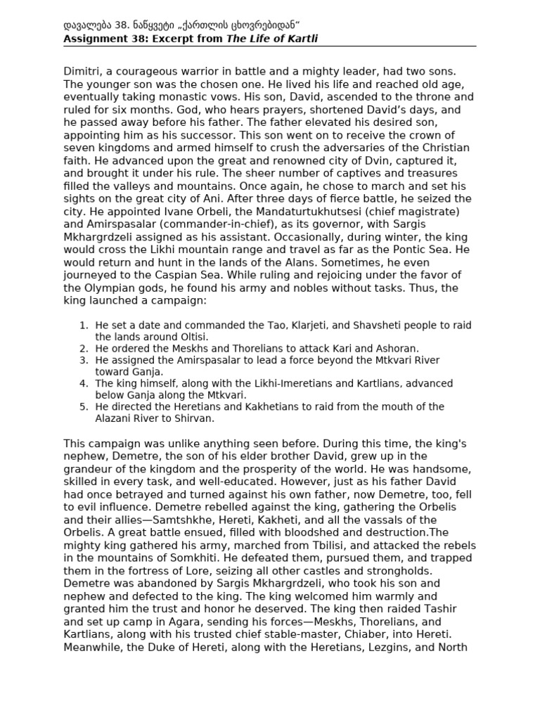 (1) 38.5. On whose side (the king’s or Demetre’s) did the North Caucasians fight? Be sure to cite specific
