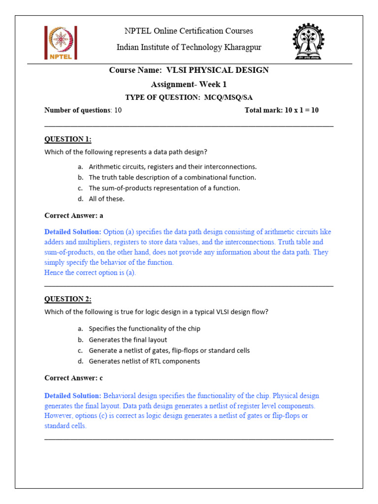Detailed Solution: Option (a) specifies the data path design consisting of arithmetic circuits like