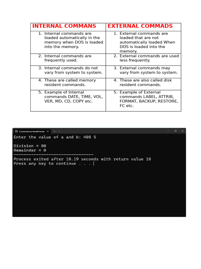 INTERNAL COMMANS EXTERNAL COMMADS