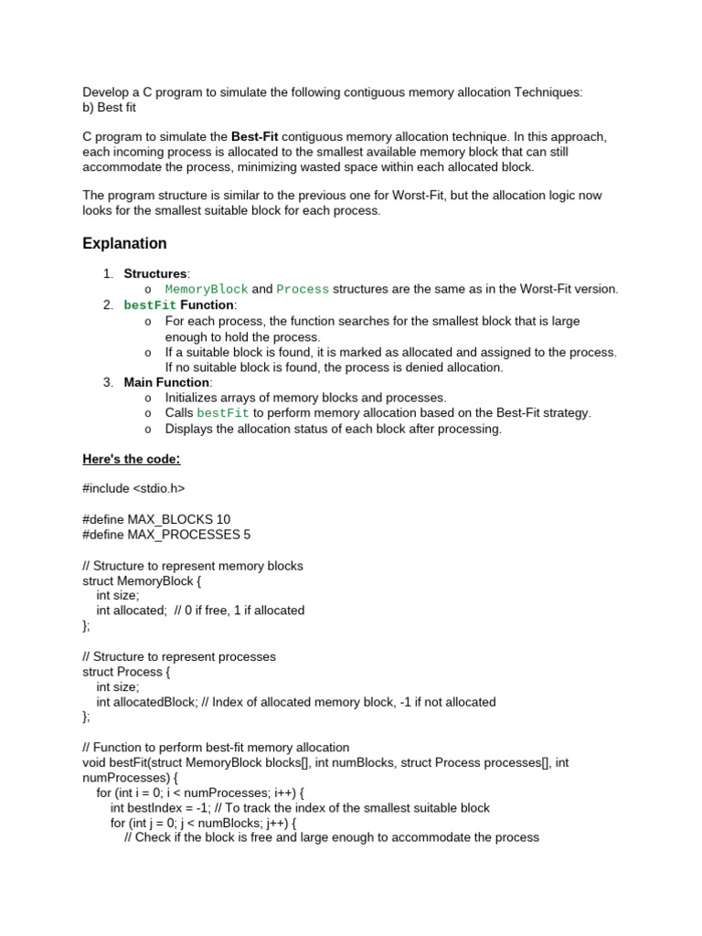 o Calls bestFit to perform memory allocation based on the Best-Fit strategy.