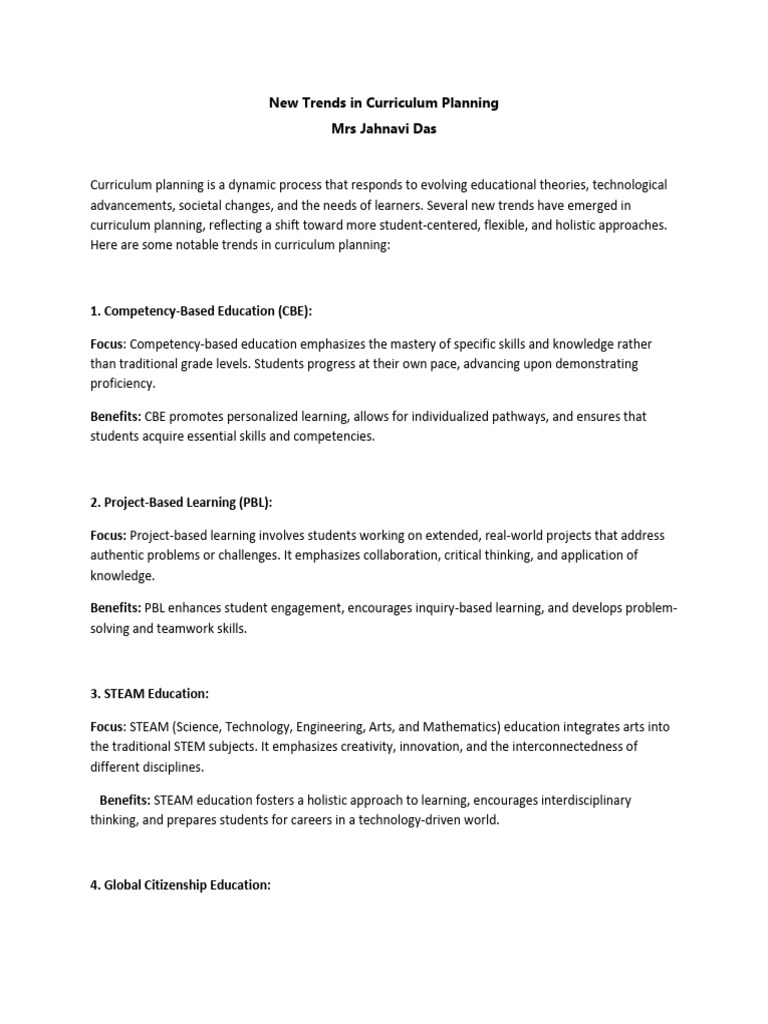 curriculum planning, reflecting a shift toward more student-centered, flexible, and holistic approaches.