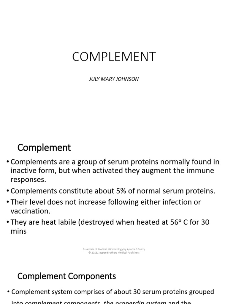 Properdin, Factor D Alternative pathway Neisseria and pyogenic