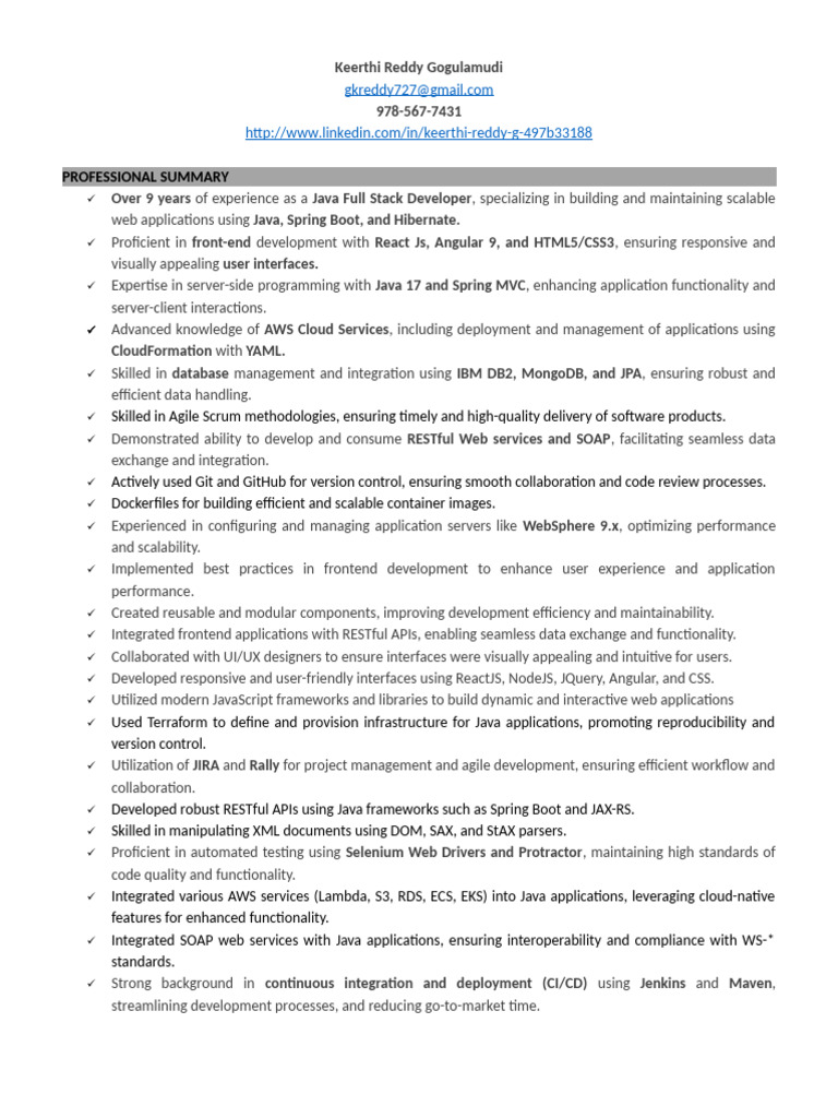 Over 9 years of experience as a Java Full Stack Developer, specializing in building and maintaining scalable
