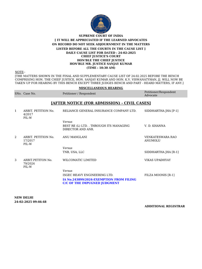 DAILY CAUSE LIST FOR DATED : 24-02-2025