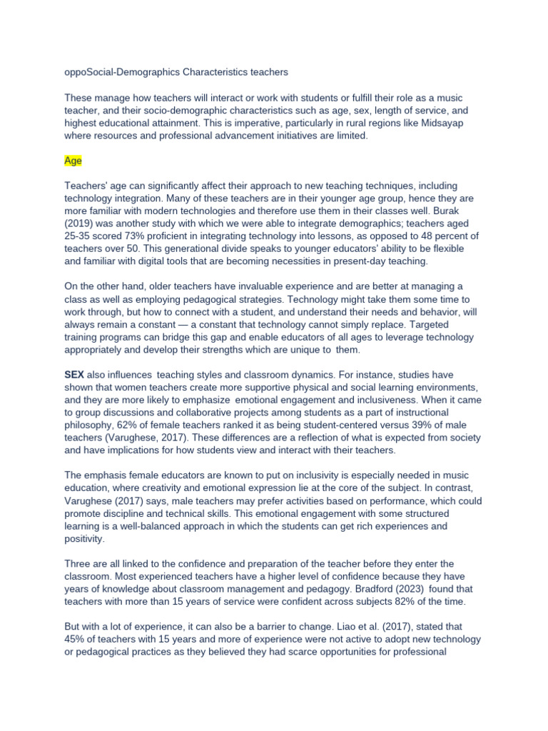 (2019) was another study with which we were able to integrate demographics; teachers aged