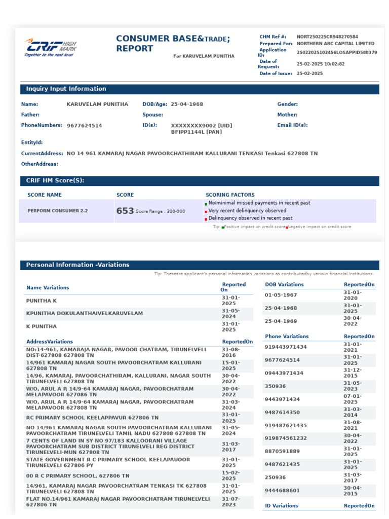 Copyrights reserved(c) 2025 CRIF High Mark CreditInformation Services Pvt. Ltd Company ConfidentialData