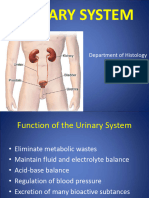 COLLECTING DUCTS: -the vast majority in the cortex/medulla are comprised of simple cuboidal epithelium and have a wide lumen in comparison with other ducts/tubules of urinary system -collecting ducts merge around the Area Cribosa to form papillary ducts of Bellini (simple columnar epithelium at this point); these terminate on the tips of the renal papilla and empty into a distended, funnel-shaped part (minor calyx) of ureter, where the conducting portion begins. CONDUCTING PORTION: Minor calyces merge to form major calyces within kidney, which in turn, merge to form renal pelvis. Urine flows through these structures to ureter and is channeled to the bladder. From the bladder, urine flows out through the urethra. The bladder has a very thick muscularis externa. The major calyx has a thicker transitional epithelium. CONDUCTING SYSTEM: -mucosa: o simple columnar epithelium is now replaced by transitional epithelium (KEY FEATURE; also note that it is exclusive to the urinary system) that varies in thickness; **minor calyx thickens to merge with/form the major calyx** o very tight junctions here (KEY FEATURE); epithelium is virtually impenetrable to any components of the urine -lamina propria: o very simple; dense connective tissue with bundles of coarse collagen fibers -muscularis externa: o variably sized; difficult to distinguish between its two layers (inner longitudinal and outer circular layer of smooth muscle) URETER: -mucosa: o transitional epithelium; irregularly sized lumen -lamina propria: o dense, thick -muscularis externa: o smooth muscle layer is very obvious -adventitia: o outer loose connective tissue coat that connects ureter to surrounding structures in body BLADDER: -same typical organization as in ureter