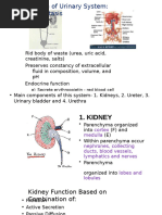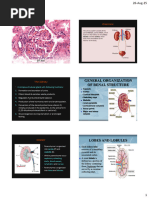 Over time, stuff accumulates in the filtration slit, so phagocytic cells are present to stop this. BASIC COMPONENTS OF THE NEPHRON: 1.) 2.) 3.) 4.) 5.) 6.) 7.) 8.) Distal Convoluted tubule Glomerulus Proximal Convoluted tubule Straight Descending tubule Peritubular capillaries (surround Uriniferous tubules) Straight Ascending tubule Collecting duct Urinary Pole URINIFEROUS TUBULES: -Proximal Convoluted Tubule: o KEY FEATURE: prominent glycocalyx results in a characteristic histological fuzzy appearance along lining of lumen o Proximal tubule is the longest section of the nephron o Convoluted part of the proximal tubule coils close to the glomerulus in the cortex of the kidney o Comprised of simple cuboidal epithelium -Straight portion of the Proximal Tubule: o Merges with the thin segment of the loop of Henle. This straight portion can be distinguished from surrounding capillaries by presence/lack of erythrocytes in lumen o Flattened epithelium forms a thin tubule -Straight portion of the Distal Tubule: o Contacts the glomerulus, forming the macula densa. o Long, low, columnar cells o No RBCs in lumen of distal tubule -Distal Convoluted Tubule: o Merges with collecting ducts of the kidney JUXTAGLOMERULAR APPARATUS: -No distinguishing feature except for its location -macula densa: always in close contact with endothelial cells of efferent/afferent glomerular arterioles -extraglomerular mesangial cells: no way to distinguish these from juxtaglomerular cells; phagocytic -juxtaglomerular cells: modified smooth muscle cells; surround afferent arteriole