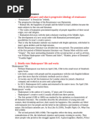 4. W. Shakespeare’ life and works: important dates and events in Shakespeare's life.