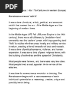 • The Renaissance emphasized humanism, individualism, and the struggle between fate and free