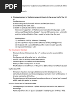 Comment on the birth and development of Renaissance theater. What are its specific features in comparison