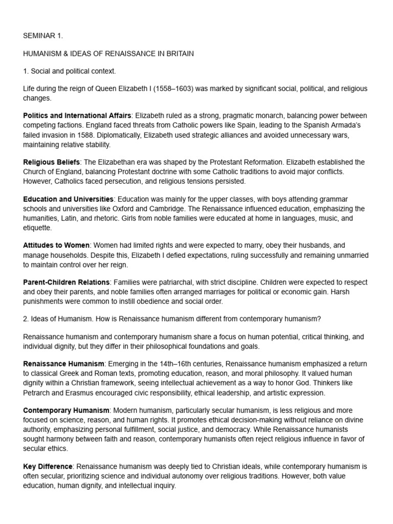 HUMANISM & IDEAS OF RENAISSANCE IN BRITAIN