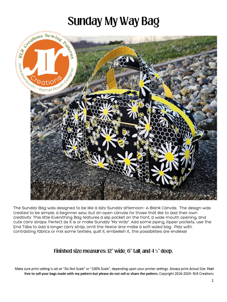 cute carry straps. Perfect as it is or make Sunday “My Way”. Add some piping, zipper pockets, use the