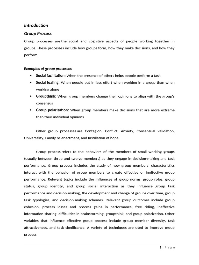 cohesion, process losses and process gains in performance, free riding, ineffective