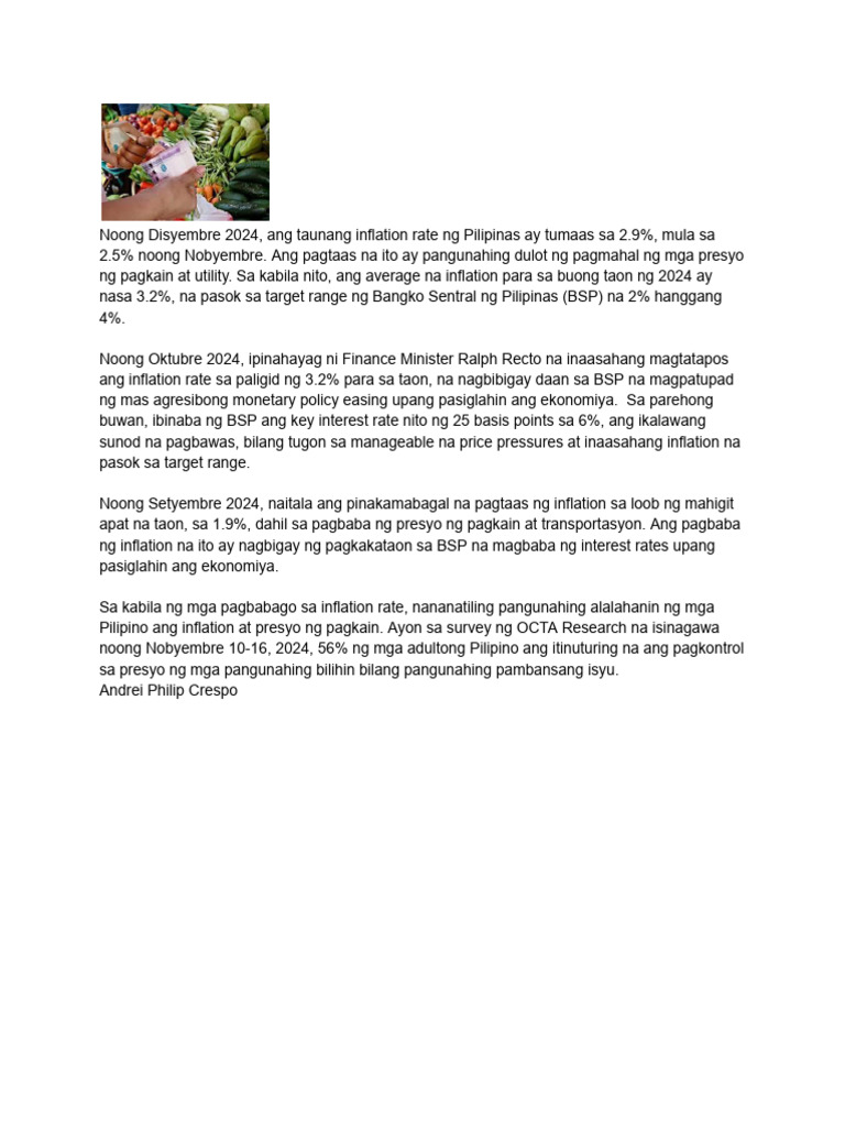 ng pagkain at utility. Sa kabila nito, ang average na inflation para sa buong taon ng 2024 ay