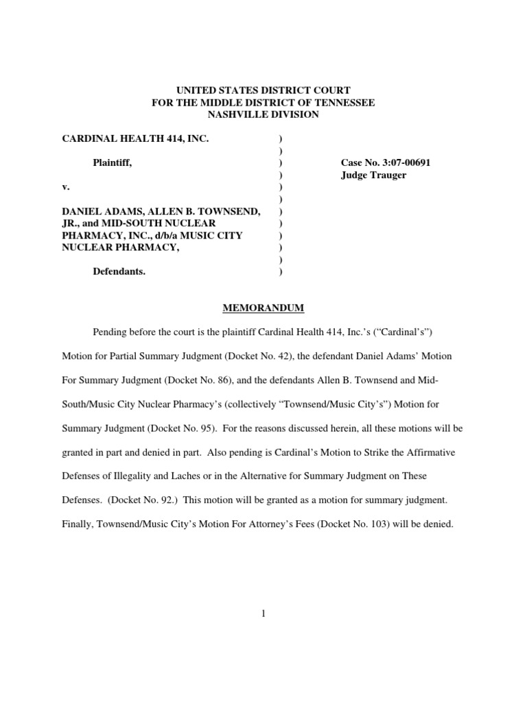 Music City Nuclear Pharmacy (“Music City”) in February 2005. Independently, Adams, who