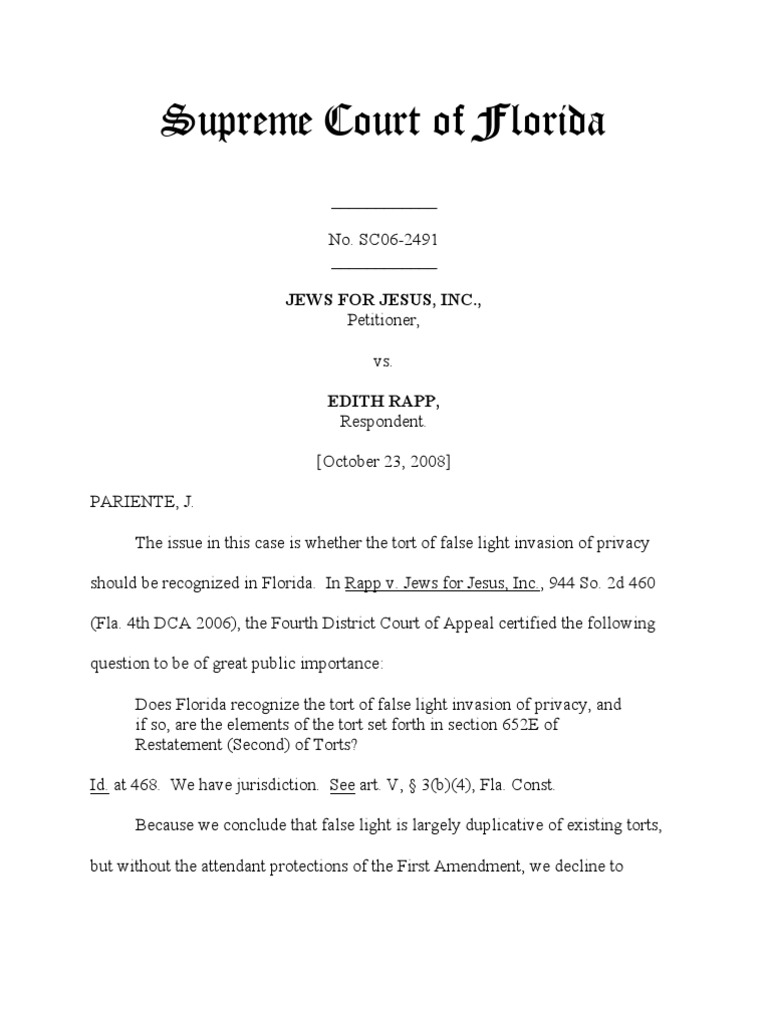 Supreme Court of Florida: Jews For Jesus, Inc.