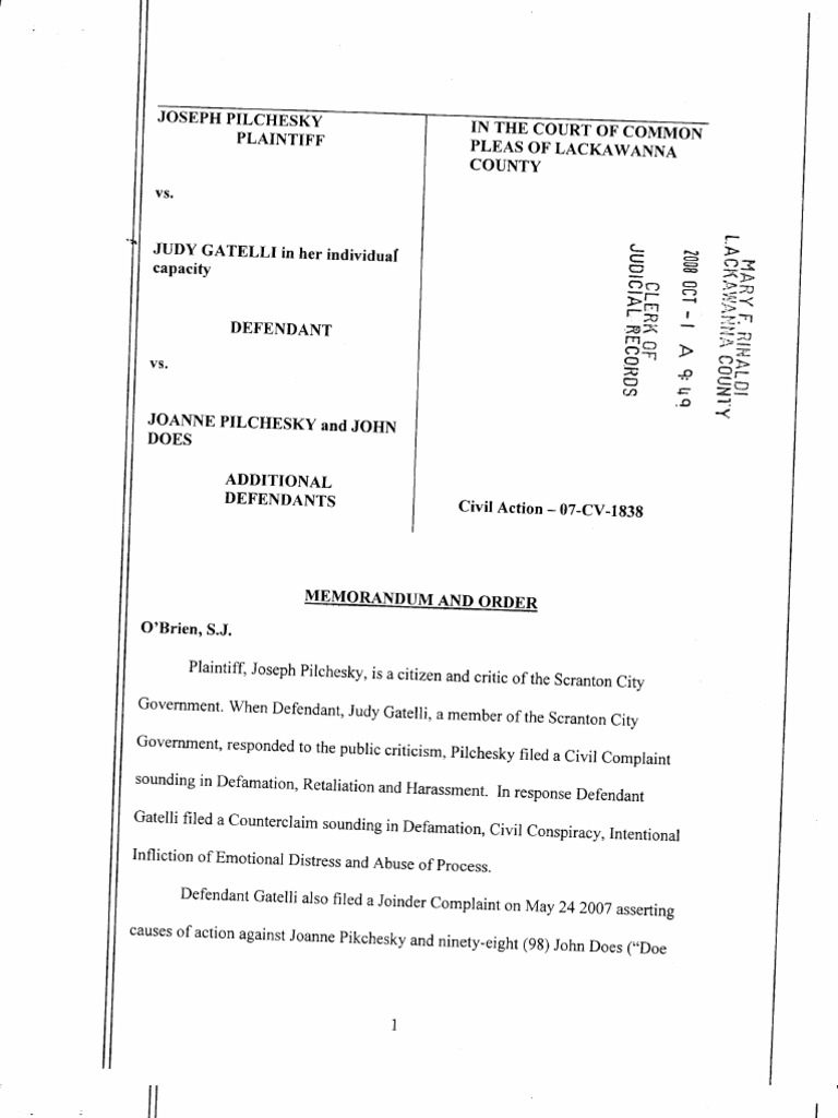 criticism, pilchesky filed a civil complaint
