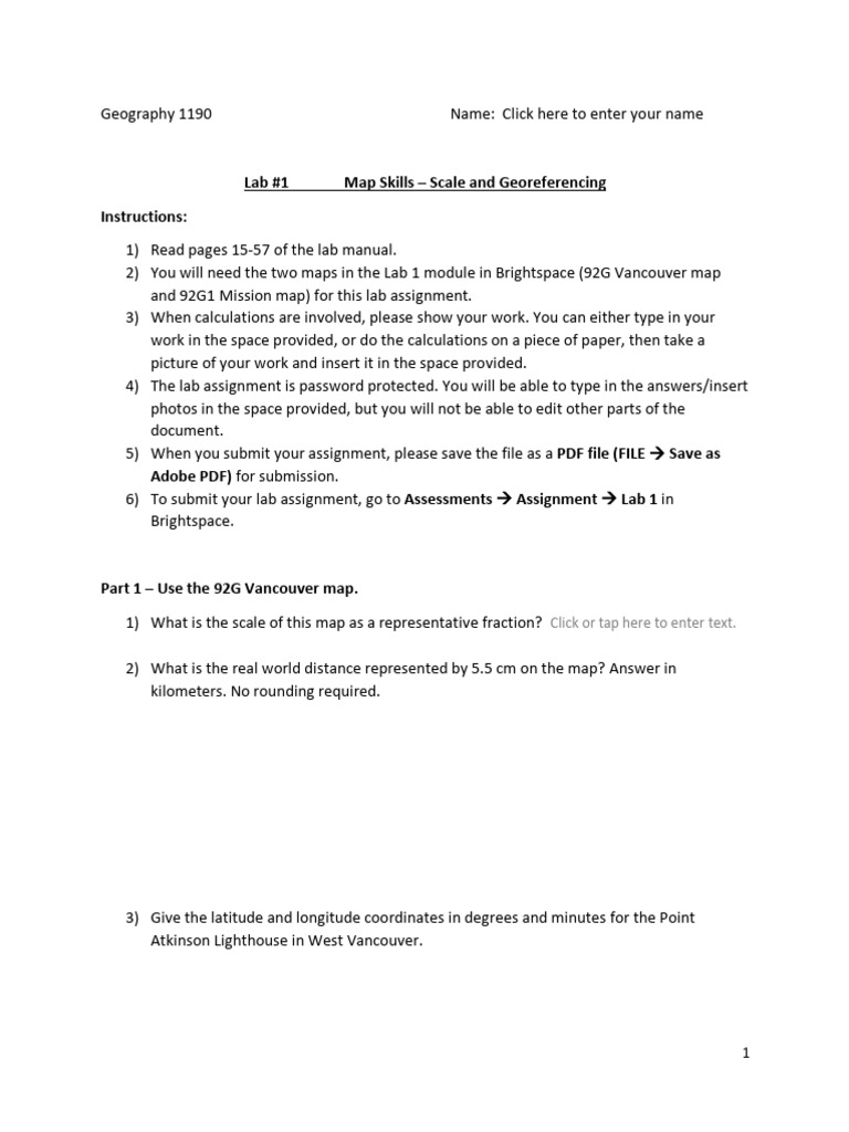 2) You will need the two maps in the Lab 1 module in Brightspace (92G Vancouver map
