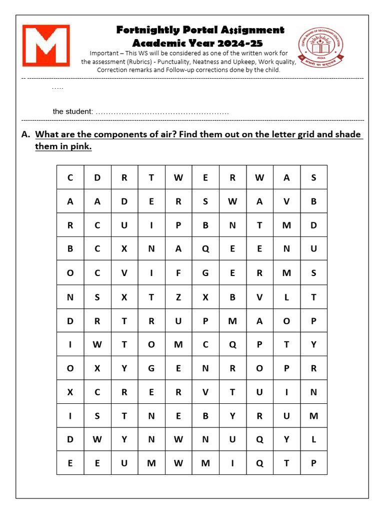 A. What are the components of air? Find them out on the letter grid and shade