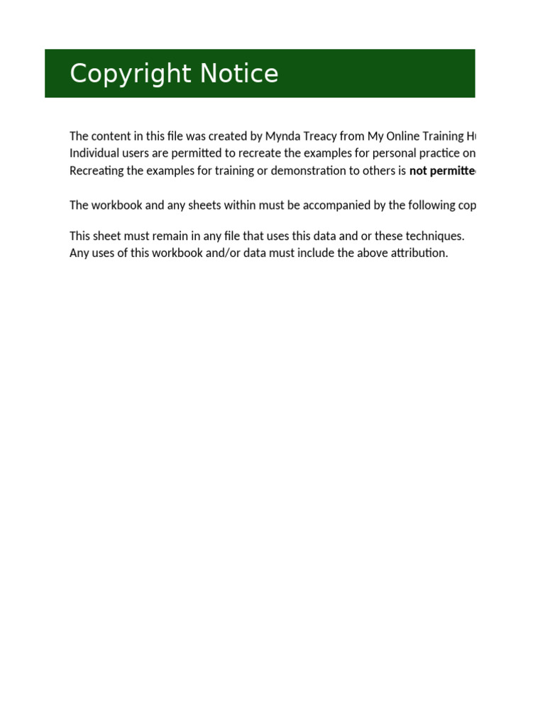 The content in this file was created by Mynda Treacy from My Online Training Hub.