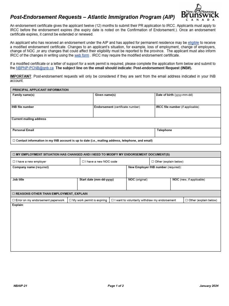 Post-Endorsement Requests – Atlantic Immigration Program (AIP)