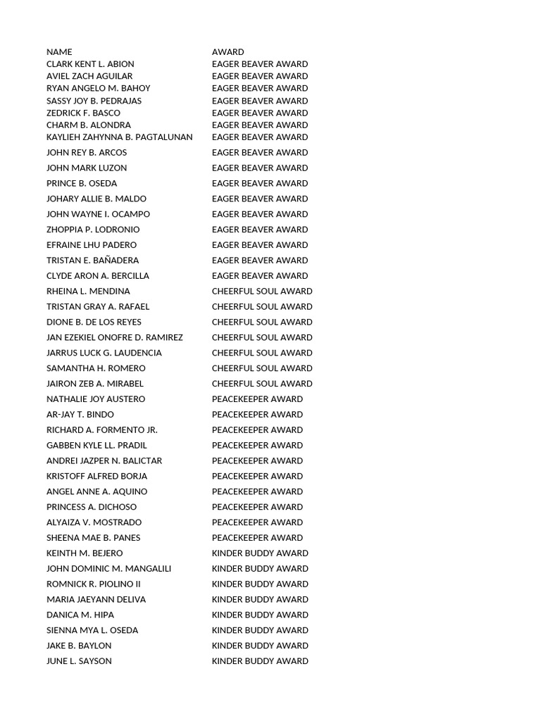 EFRAINE LHU PADERO EAGER BEAVER AWARD