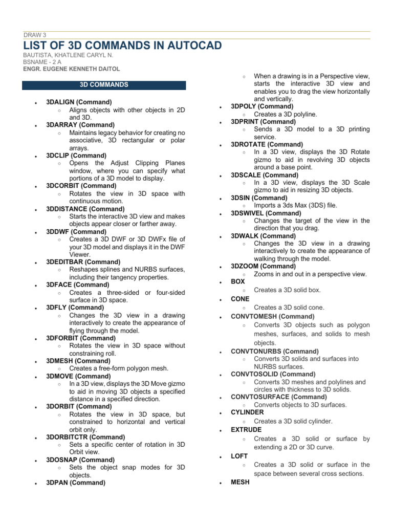 ● 3DARRAY (Command) ● 3DPRINT (Command)