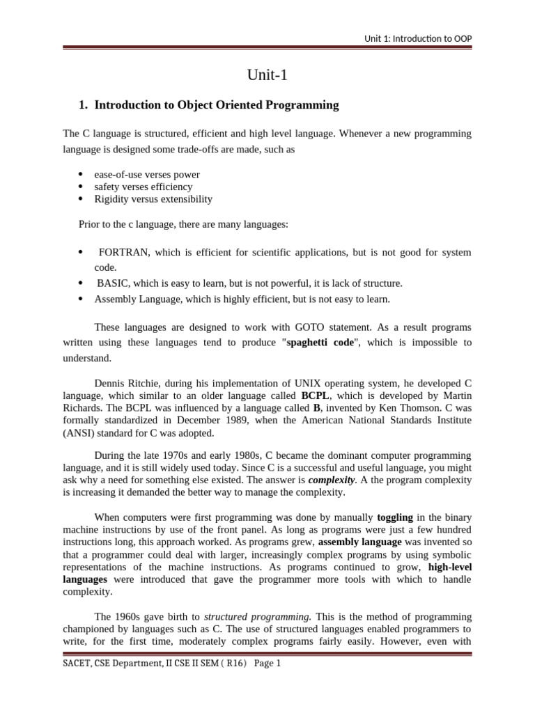 Unit 1: Introduction to OOP