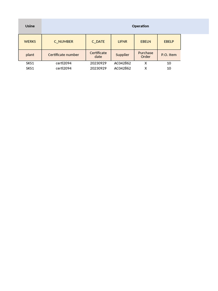 plant Certificate number Supplier P.O. Item