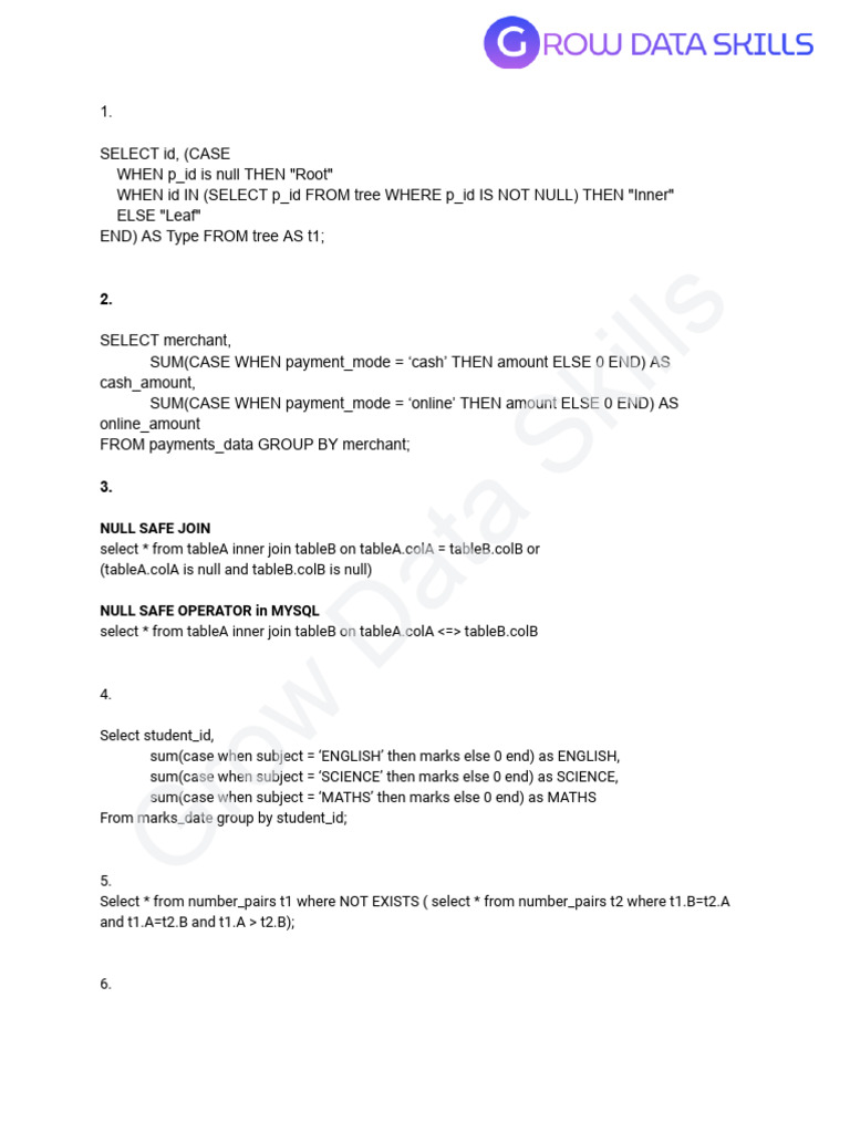 SUM(CASE WHEN payment_mode = ‘cash’ THEN amount ELSE 0 END) AS