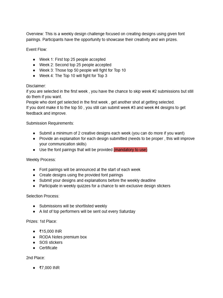 ● Font pairings will be announced at the start of each week
