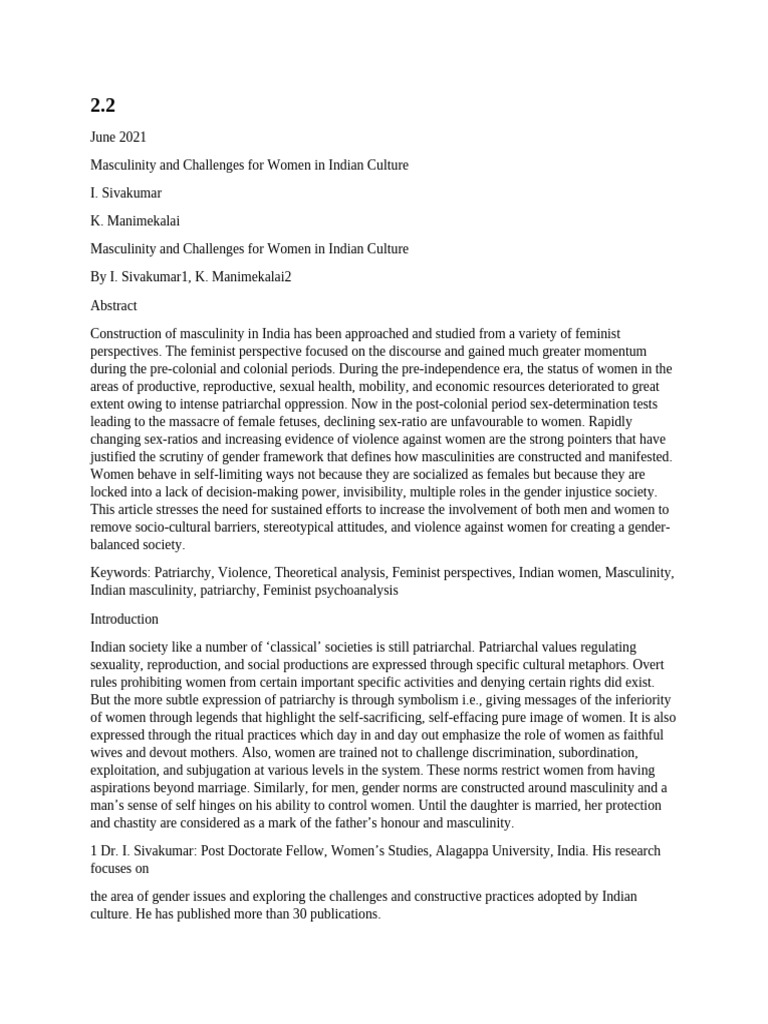 1 Dr. I. Sivakumar: Post Doctorate Fellow, Women’s Studies, Alagappa University, India. His research
