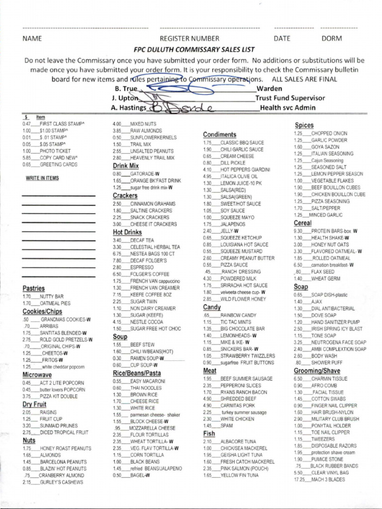 mad e once you have submitted your order form. It is your responsibility to check the Commissary bull etin