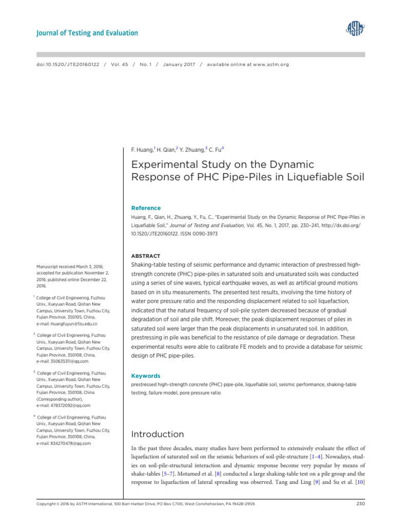 HUANG ET AL. ON PHC PIPE-PILES IN LIQUEFIABLE SOIL 231