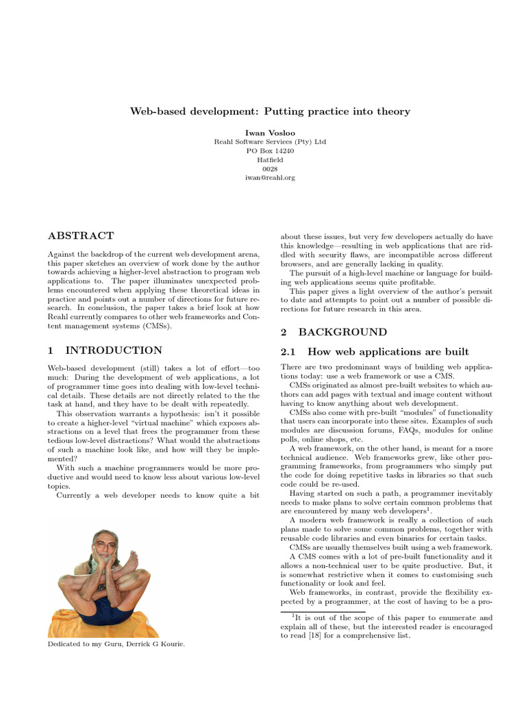 more responsive. Since only parts of a page need to be trans- The initial ideas behind Reahl were initiated several years