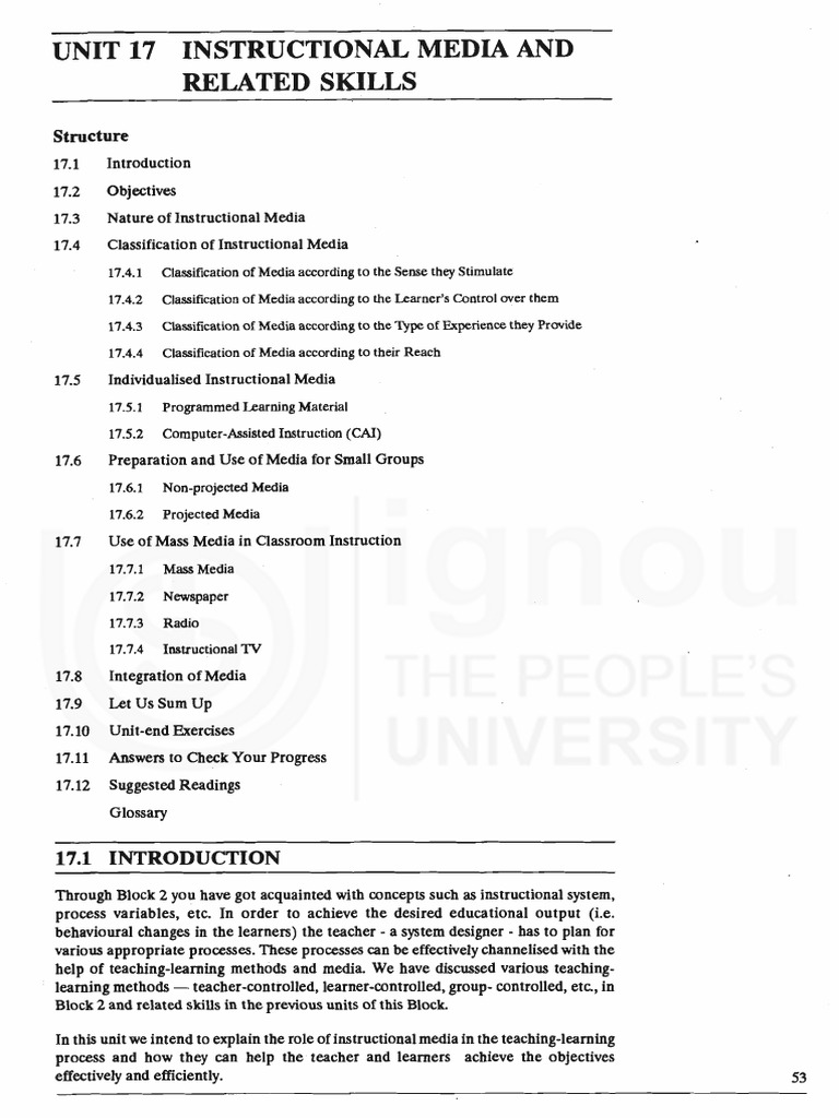 Instructional media play a major role in the classroom communication process. This unit