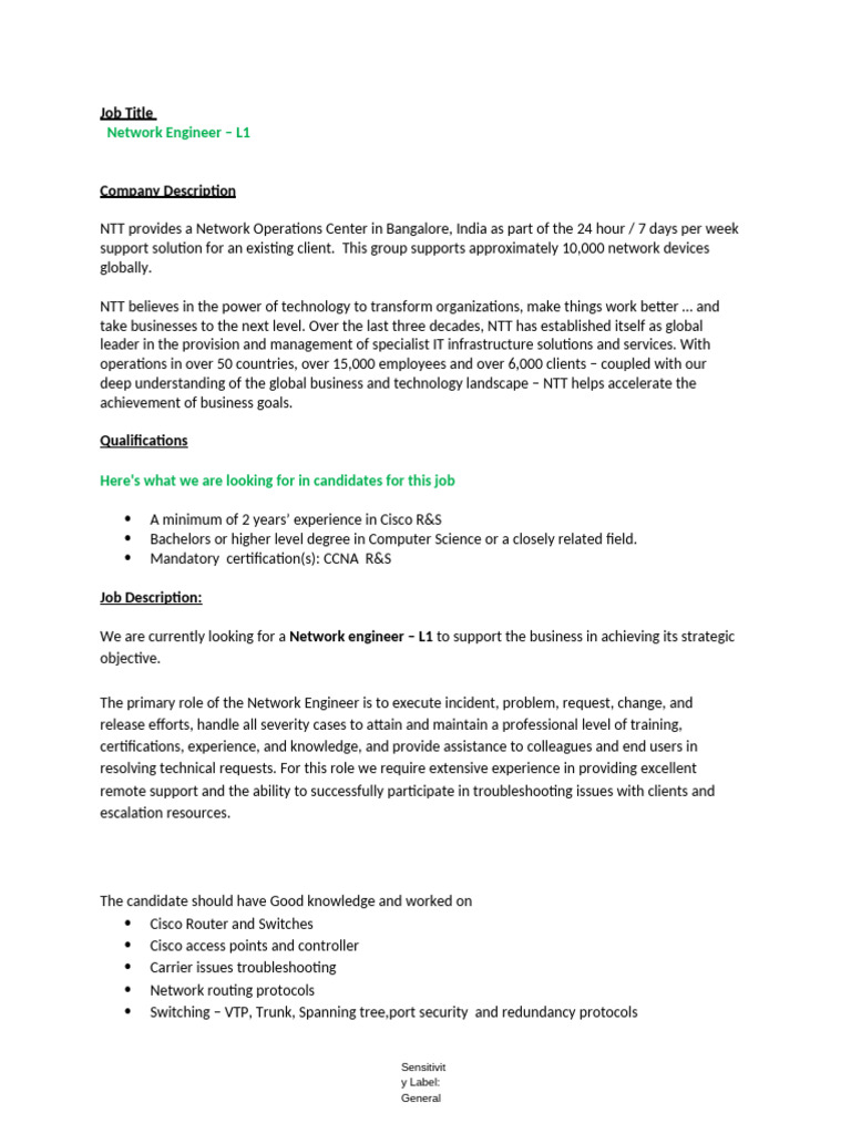 We are currently looking for a Network engineer – L1 to support the business in achieving its strategic