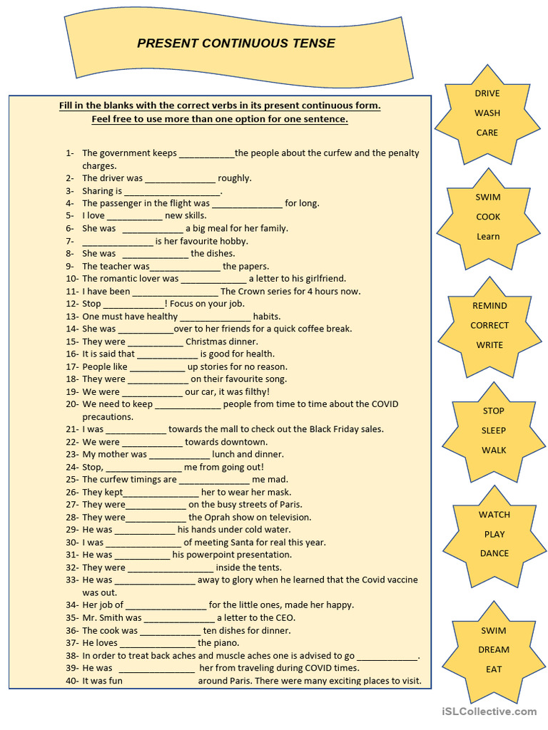 Fill in the blanks with the correct verbs in its present continuous form.