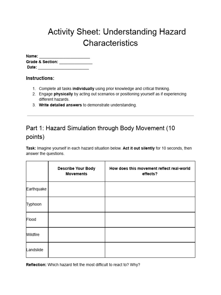 Activity Sheet: Understanding Hazard