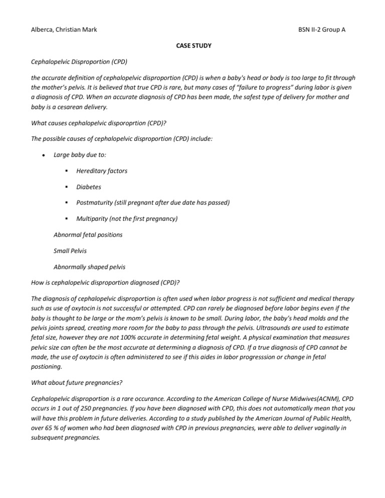 Alberca, Christian Mark CASE STUDY Cephalopelvic Disproportion (CPD)