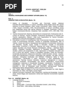 Note: The candidates are expected to have a thorough knowledge of the above mentioned poets, essayists, novelists and dramatists and their respective works mentioned at the level that is expected of a student of literature. Part IV Teaching Methodology (Marks: 16) 1. Aspects of English language- History, Nature, Importance of English. 2. Problems and Principles of Teaching English. 3. Objectives of Teaching English. 4. Approaches, Methods and Techniques of Teaching English. 5. Developing Language Skills-Listening, Speaking, Reading and Writing. 6. Teaching Learning material development, preparation and use (including use of ICT). 7. Developing Study and Reference Skills. 8. Remedial Teaching. 9. Evaluation in teaching / learning process. 10. Lesson planning. 11. Curriculum and Textbooks- Development and Use.