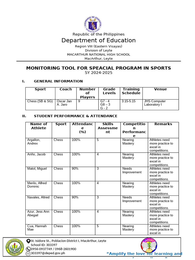 MONITORING TOOL FOR SPEACIAL PROGRAM IN SPORTS