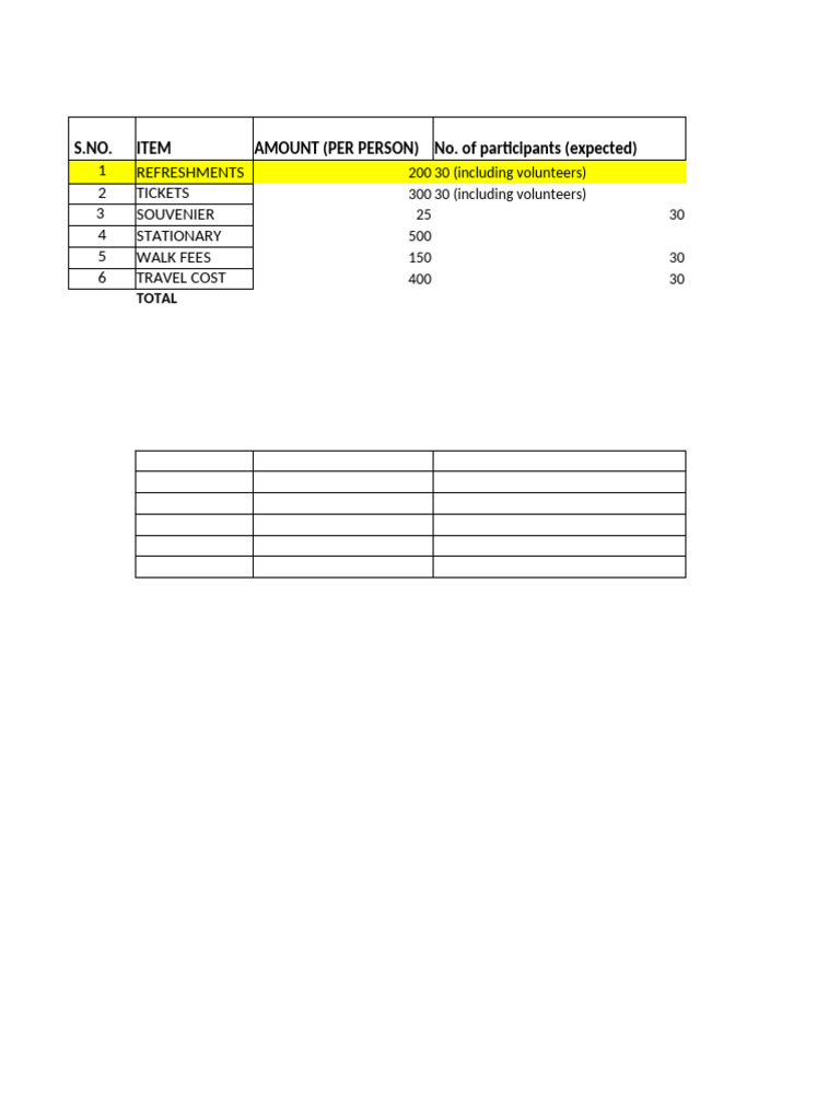 S.NO. ITEM AMOUNT (PER PERSON) ed)