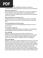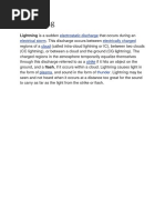 of thunder. Lightning can strike the ground, trees, or buildings, causing damage and sometimes