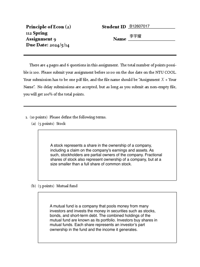 Principle of Econ (2) Assignment 9 – Page 2 of 4 Due Date: 2024/5/14