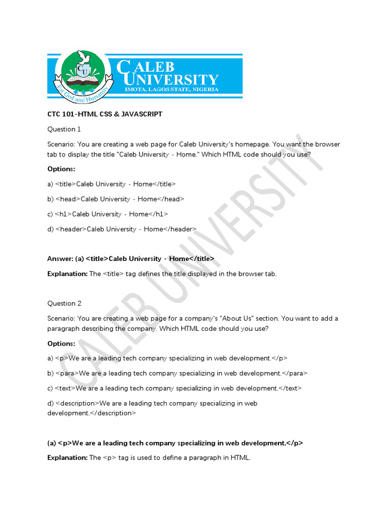 Scenario: You are creating a web page for Caleb University's student portal. You want to add a
