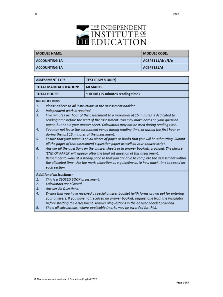 ACCOUNTING 1A ACBP5111/d/e/f/p